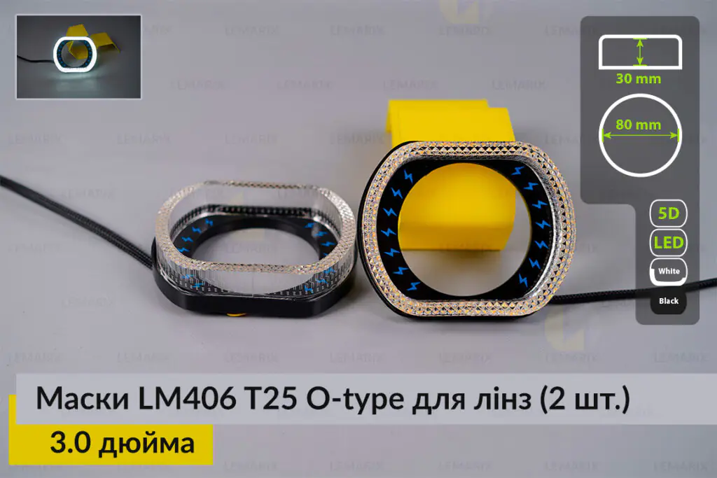 Маски LM406 5D LED O-type T25 WY для лінз авто 3.0 дюйма Black (2 шт.) - картинка 2 Прокласти маршрут