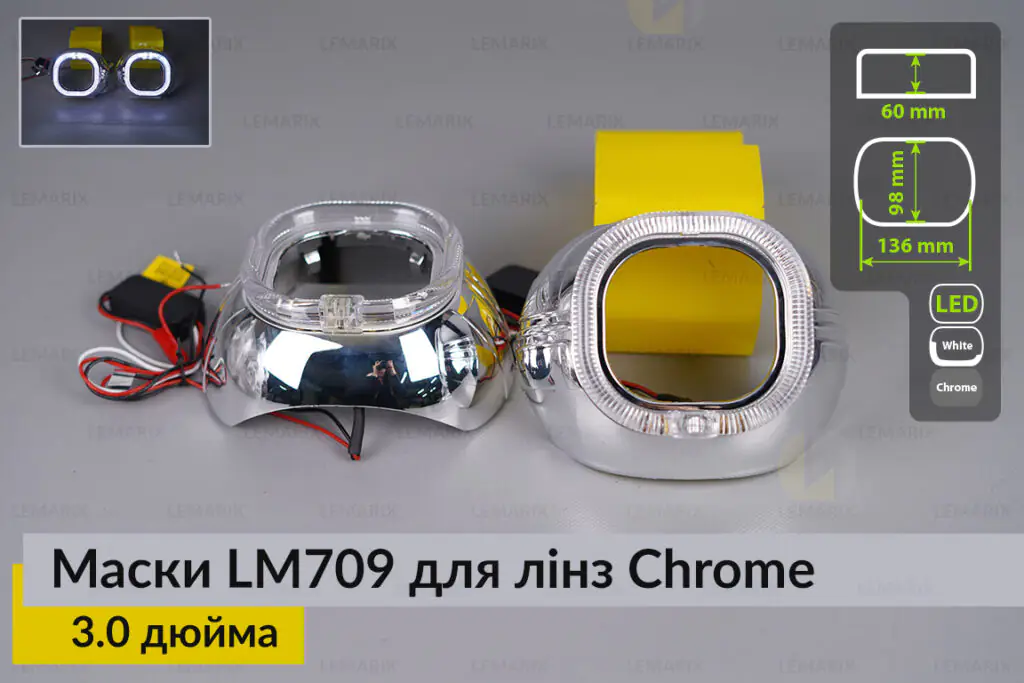 Маски LM709 LED W для лінз авто 3.0 дюйма Chrome (2 шт.) - картинка 2 Прокласти маршрут